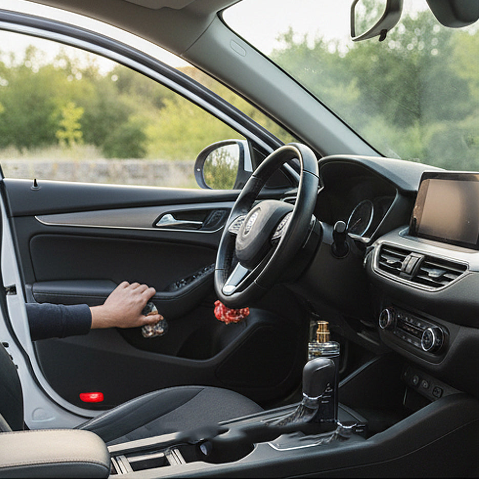 Never Spray Directly on Surfaces: Avoid spraying directly onto the dashboard, leather seats, plastic trims, or electronic components. The alcohol and oils in the perfume can cause damage or discoloration over time.